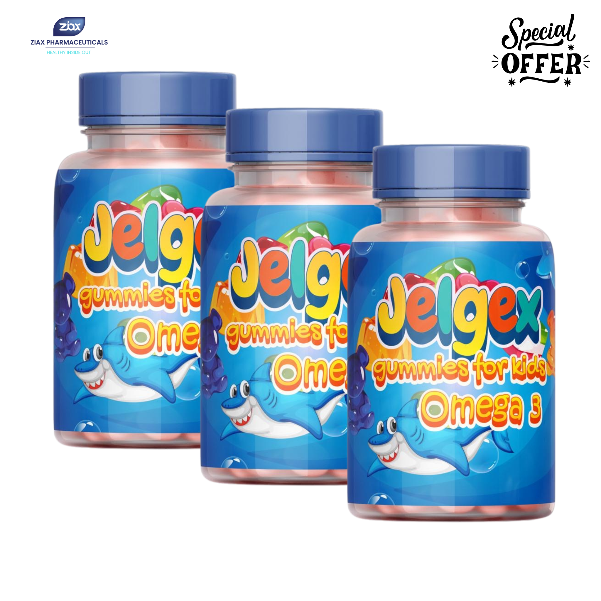 جيلجكس أوميجا 3 حلوى جيلجكس للأطفال - دعم للدماغ والرؤية (3 عبوات)