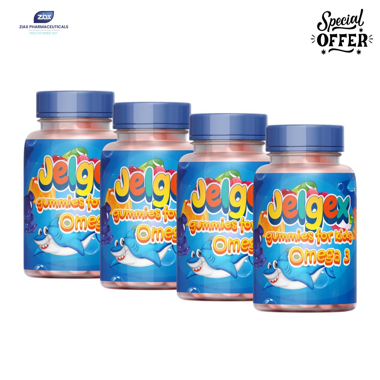 جيلجكس أوميجا 3 حلوى جيلجكس للأطفال - دعم للدماغ والرؤية (عبوة من 4 قطع)